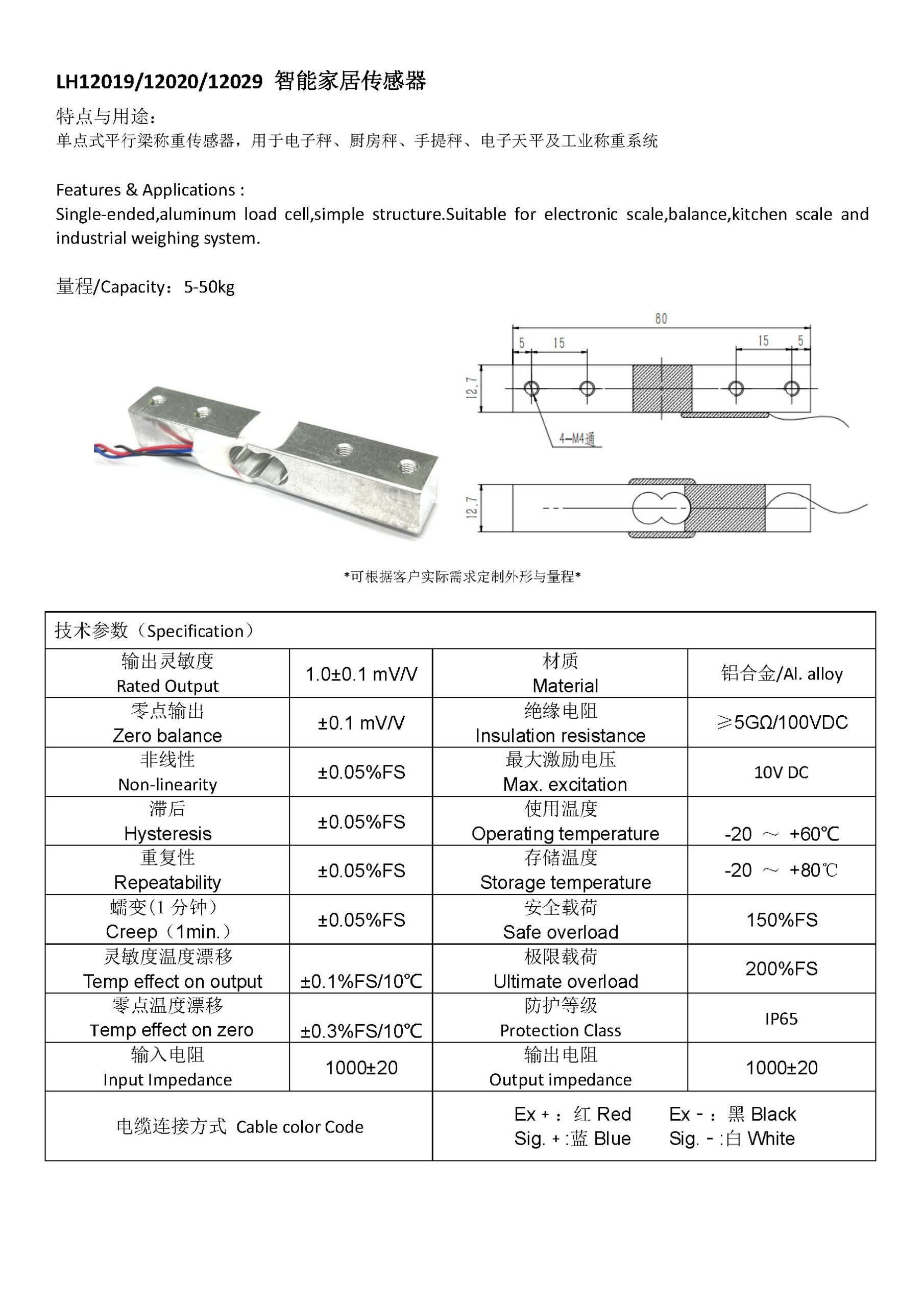 单点式铝合金制称重传感器。精度高、抗偏载能力强,结构简单,容易安装。适用于电子秤、电子天平及工业称重系统。