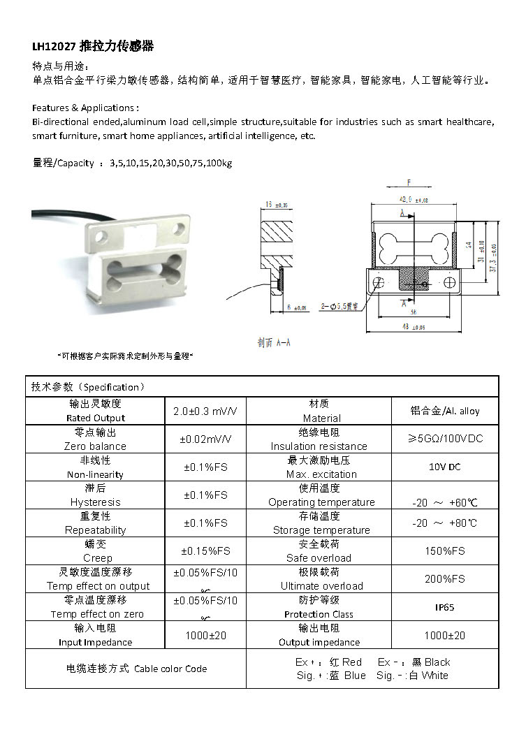 单点式铝合金制称重传感器。精度高、抗偏载能力强,结构简单,容易安装。适用于电子秤、电子天平及工业称重系统。
