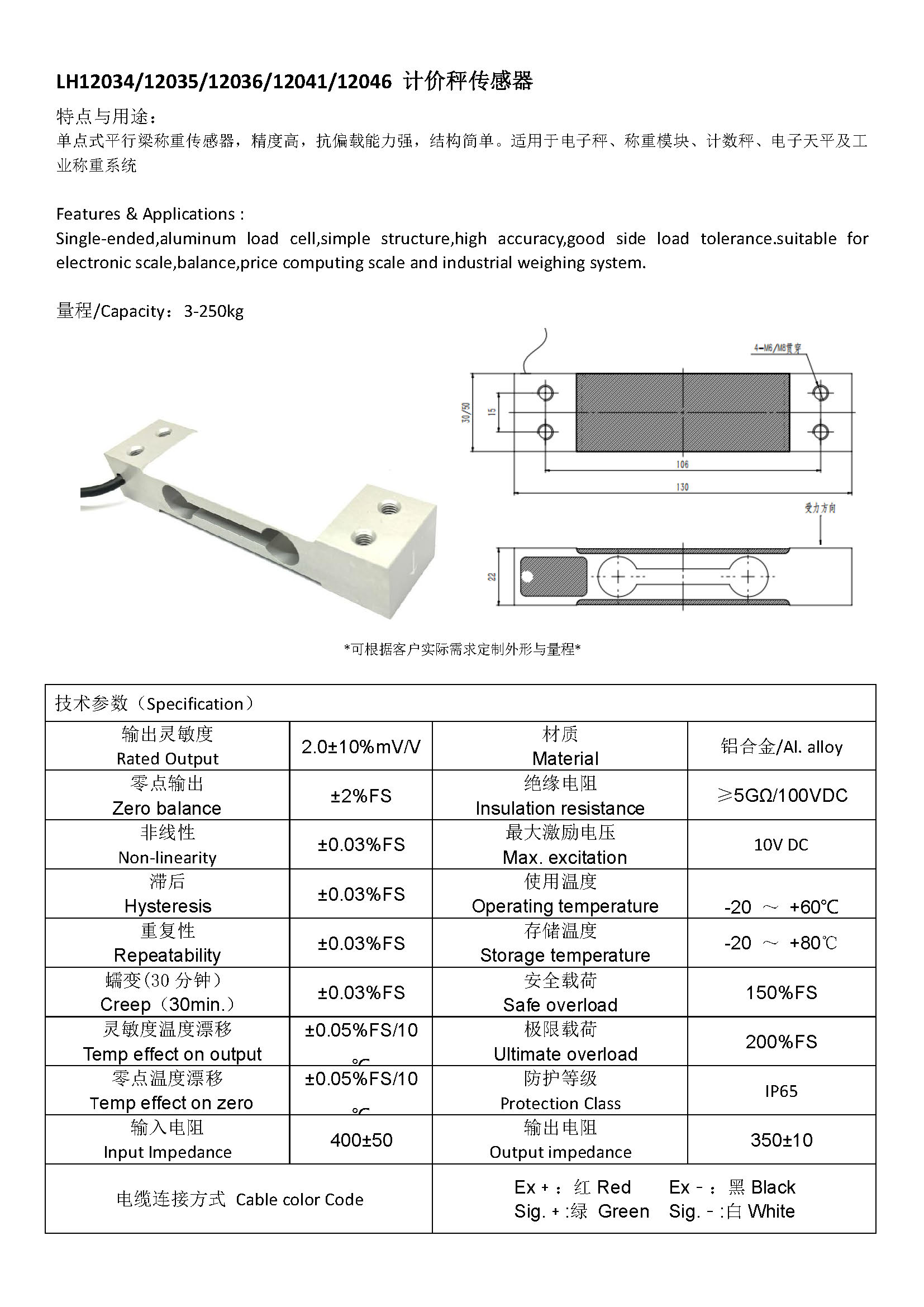 单点式铝合金制称重传感器。精度高、抗偏载能力强,结构简单,容易安装。适用于电子秤、电子天平及工业称重系统。