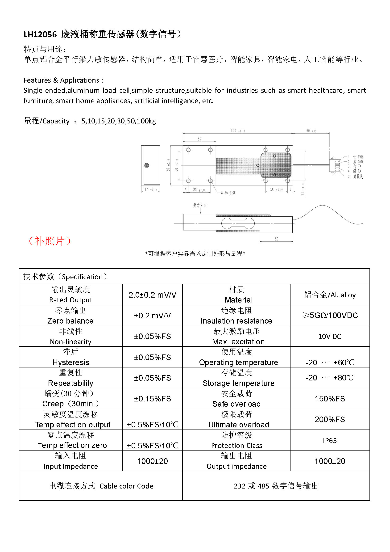 单点式铝合金制称重传感器。精度高、抗偏载能力强,结构简单,容易安装。适用于电子秤、电子天平及工业称重系统。